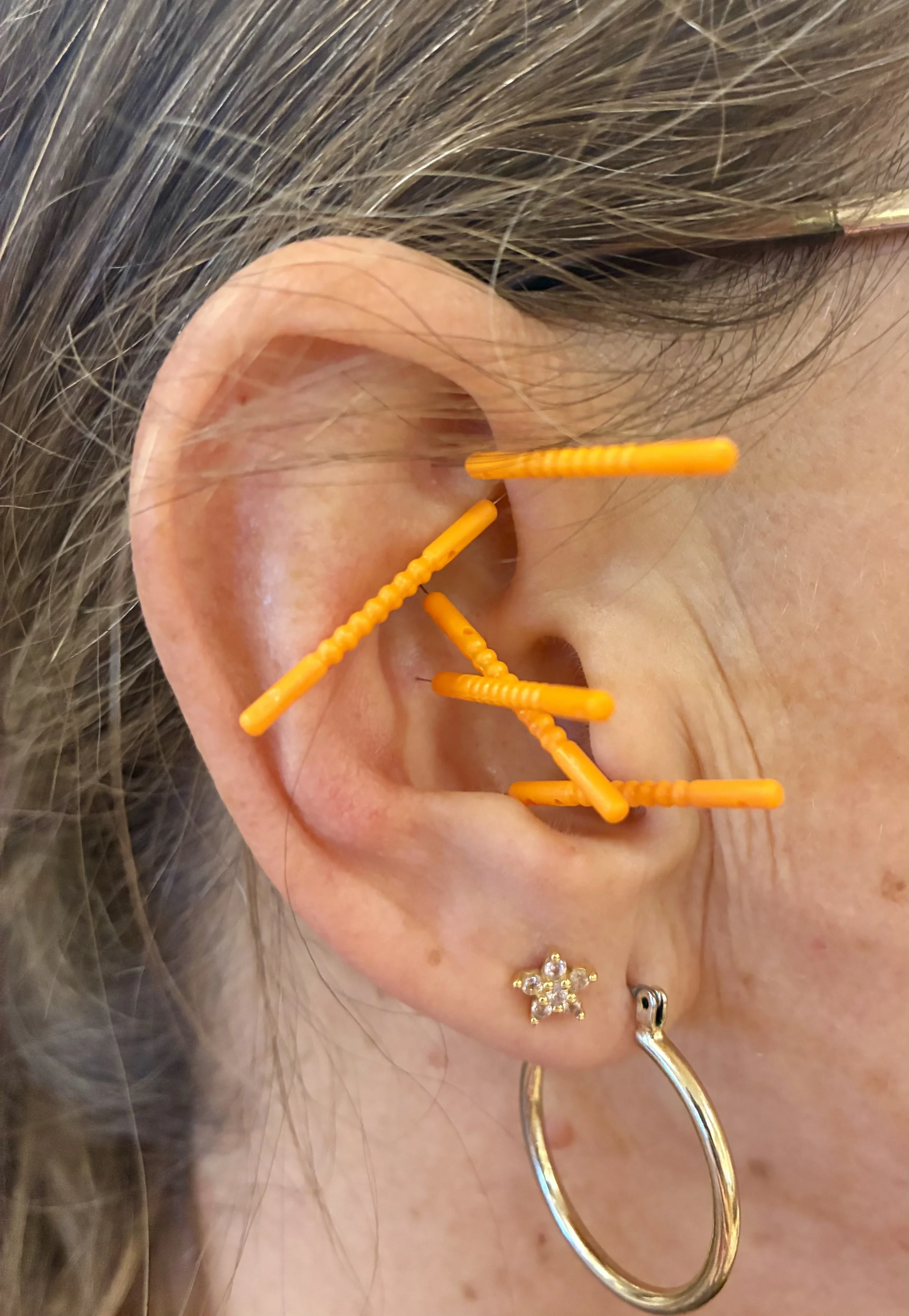 NADA er øreakupunktur, hvor man får sat 5 nåle i hvert øre.